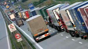 epa00751303 Lorries are caught up in a traffic jam of 15 kilometres length on motor-way ’Autobahn A12’ at the German-Polish border crossing near Muellrose, Germany, Thursday 22 June 2006. The A12 is the most important connection to Eastern Europe for freight vehicles. About 4,800 lorries cross the border towards Poland while 4,600 head for Berlin on a daily basis. EPA/Patrick Pleul